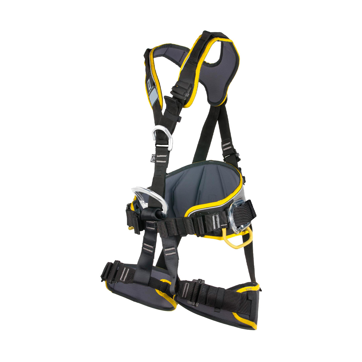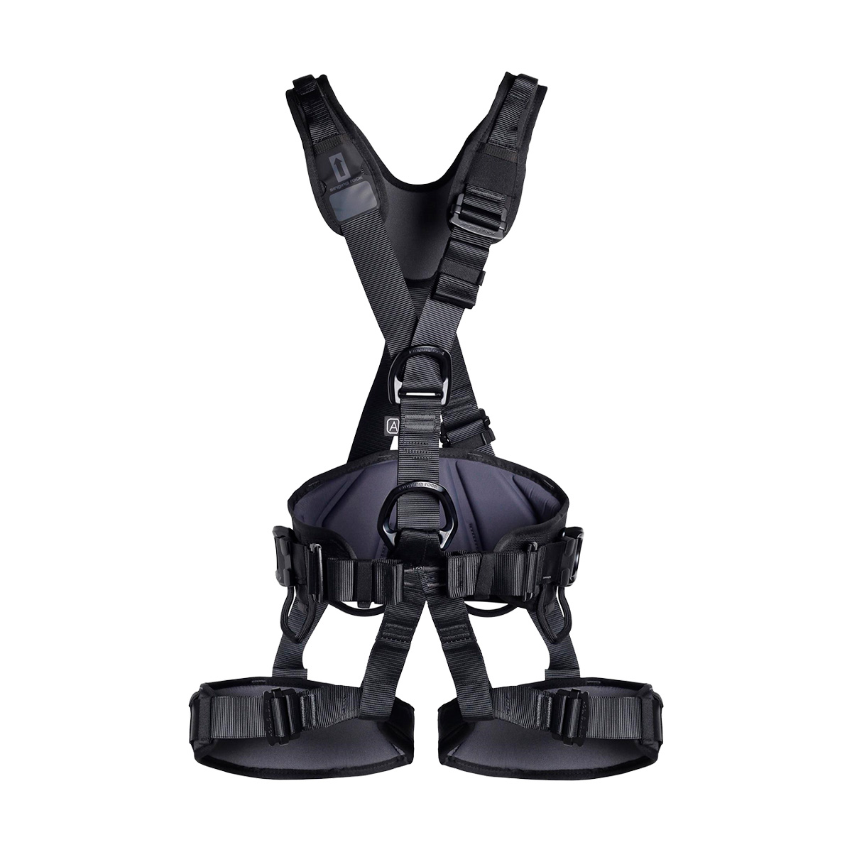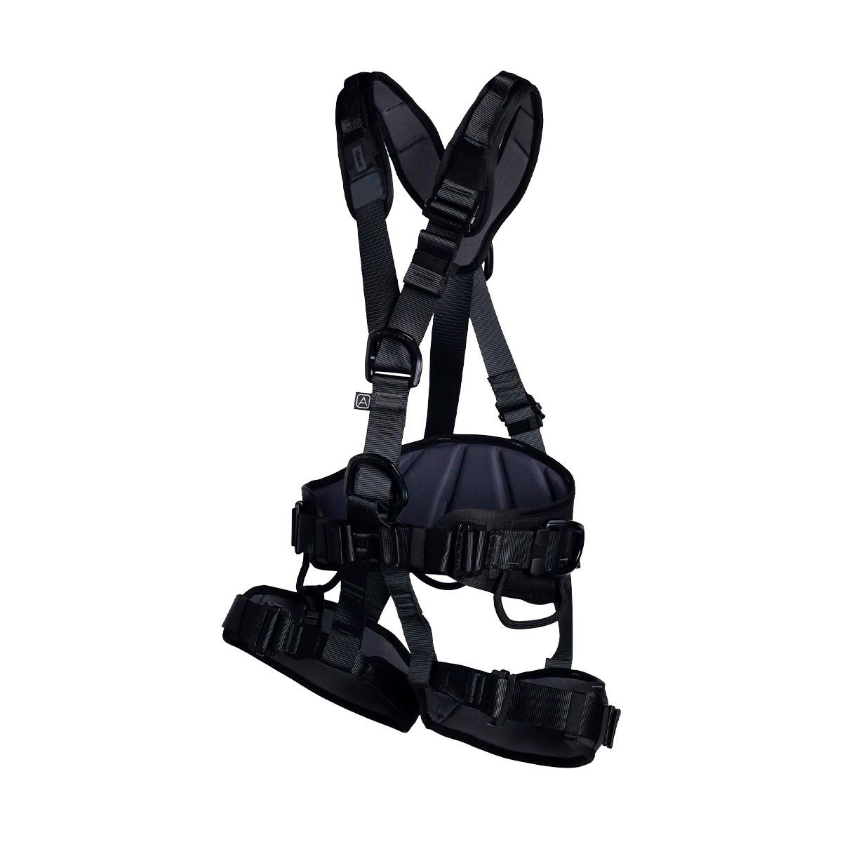 Arnés totalmente ajustable para posicionamiento de trabajo con cinchas continuas ajustables, hebillas Easy-lock, cinturón ancho acolchado, perneras anatómicas y tirantes.