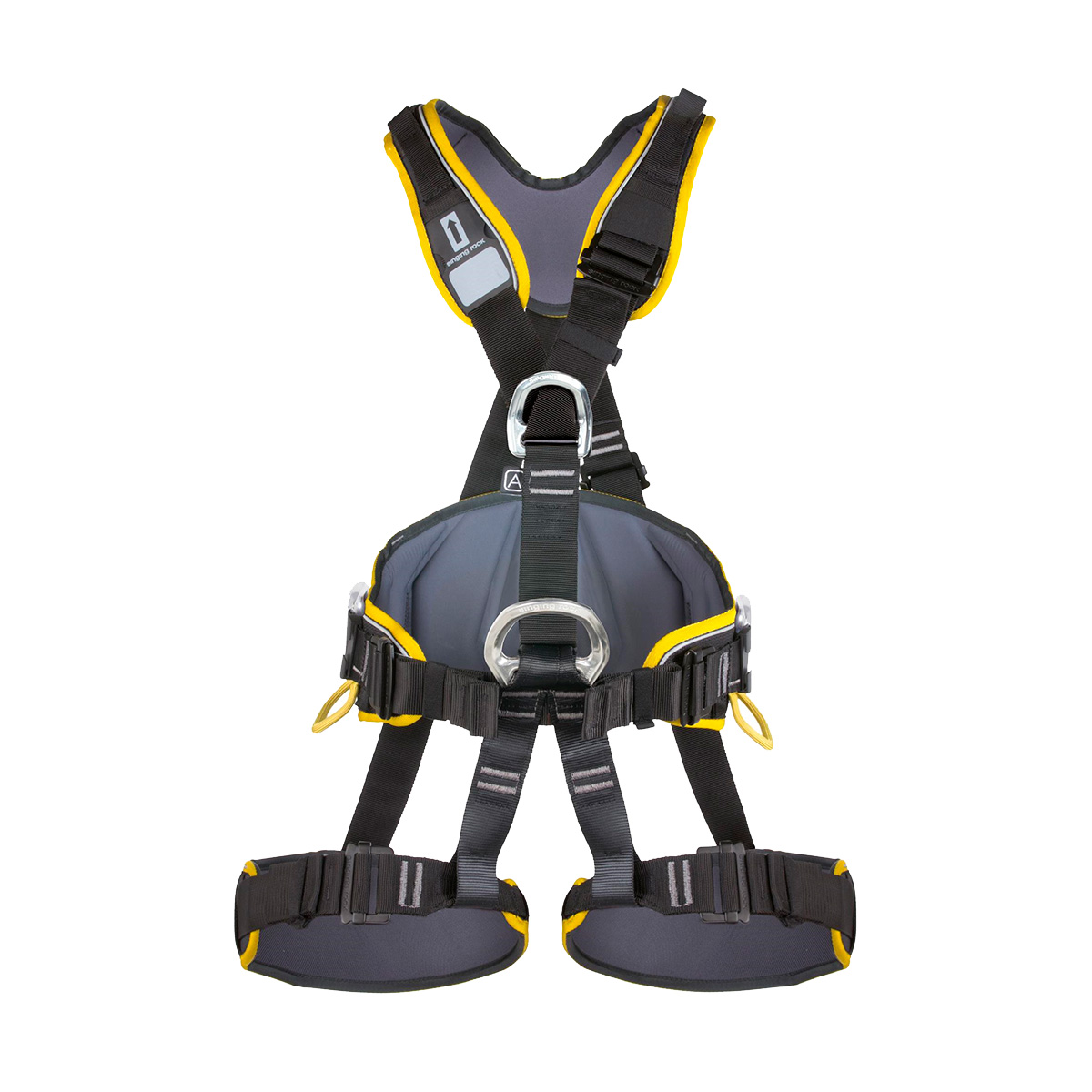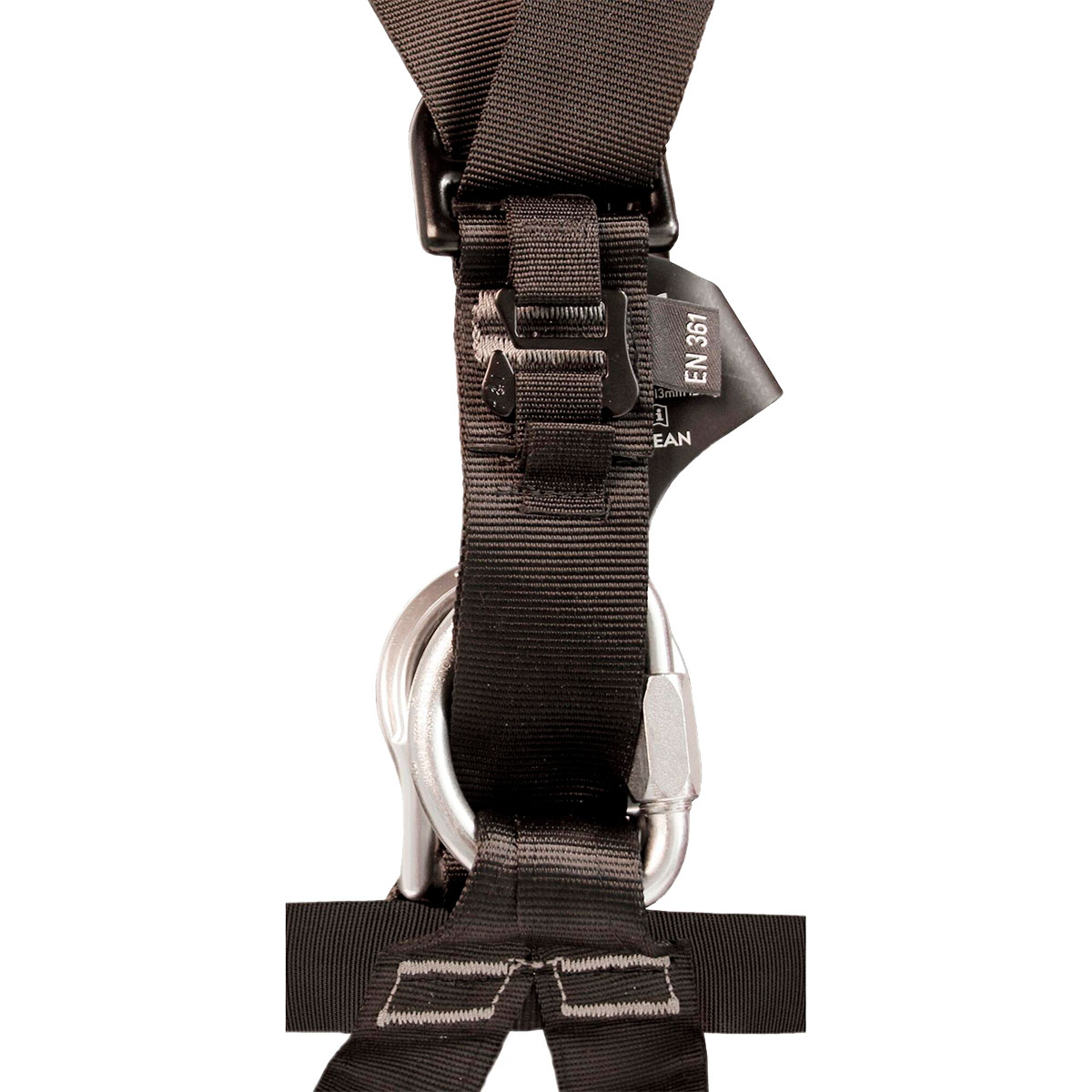 punto de enganche trasero plano no molesta a la espalda del usuario cuando lleva una mochila o un aparato de respiración - Punto de enganche delantero inferior para la colocación del descensor o el posicionamiento de trabajo según la norma EN 813