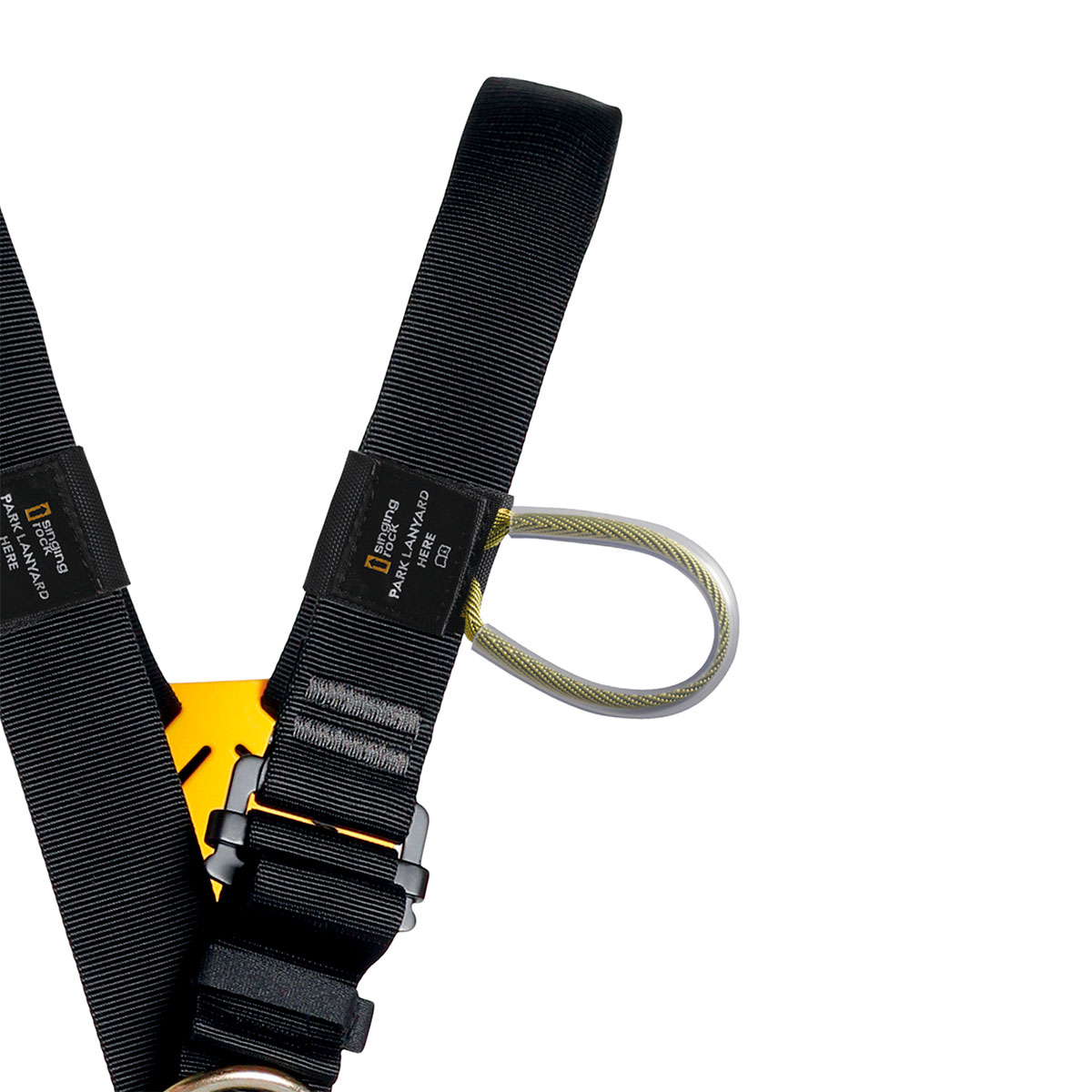 - Los soportes de conectores BIG/GIGA ergonómicos y extraíbles en las correas de los hombros le permiten guardar los conectores de detención de caídas cuando no están en uso; en caso de caída, los bucles se soltarán para permitir que el amortiguador se pueda desplegar de forma segura